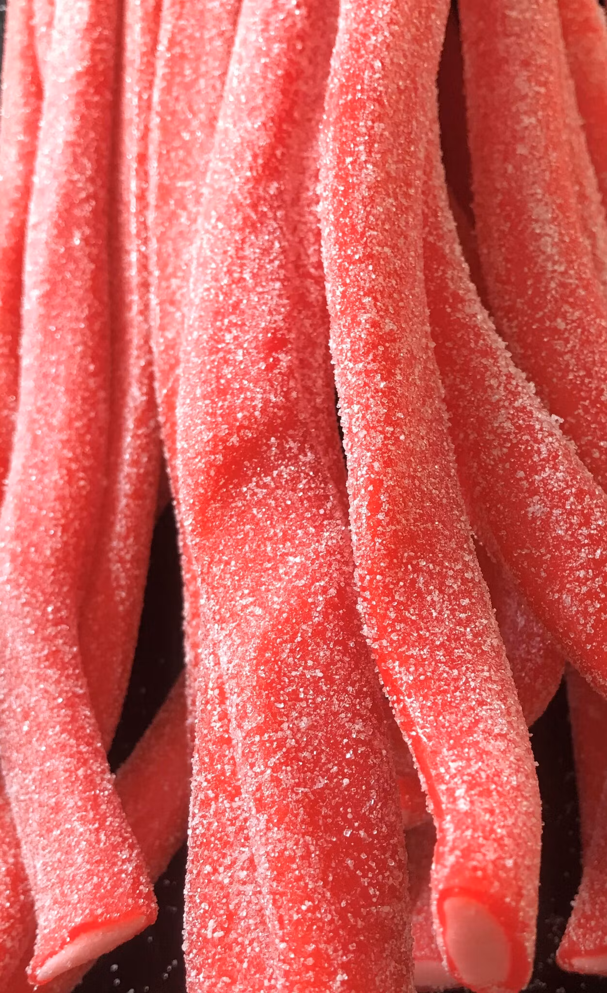 Ingredienser: Socker, glykossirap, vatten, vetemjöl, majsstärkelse, vegetabiliskt fett, surhetsreglerande medel E330, E296, maltodextrine, natriumcitrat, aromer, gelatin, fuktighetsbevarande medel E417, konserveringsmedel kaliumsorbat, färgämne E129.