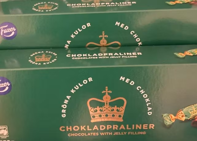 Ingredienser: Socker, glukossirap, vatten, kakaomassa, kakaosmör, geleringsmedel E440, surhetsreglerande medel E330, E331, E337, mjölkfett, emulgeringsmedel sojalecitin, konserveringsmedel E202, aromer, färgämne E141. Kan innehålla nötter, mandlar och spannmål som innehåller gluten.