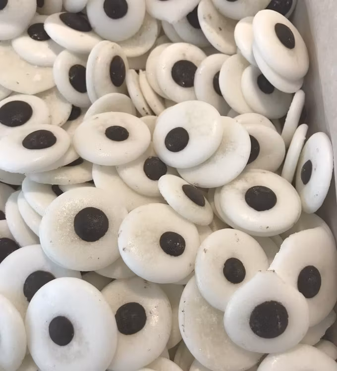 Mintkyssar 1 kr Produkten är tyvärr slut i lager. Lagersaldo: Dela Information Ingredienser: Socker, vegetabiliskt fett (palmkärnolja), kakaopulver, sojafett, solroslecitin, pepparmyntsolja.